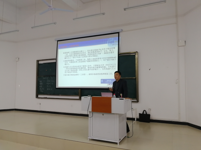 讲座围绕多晶硅生产工艺及其发展趋势为主题,对企业中最新的多晶硅的制备技术、生产工艺流程、国际和国内多晶硅企业现状和产业概况以及后续发展趋势等做了详细介绍,并现场解答了同学们疑问。