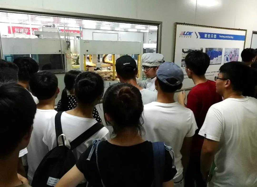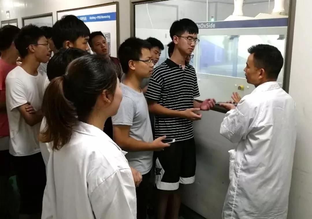 在参观中,赛维电池公司制造部副总监仲总从“制绒”、“扩散” ,再到“去PSG”、“PECVD”、“丝网印刷”等生产工序,一一为同学们作了详细介绍,工艺工程师李工还为同学们介绍了电池公司新配备的全自动化设备,让同学们近距离观察到先进的生产工艺。同学们纷纷点赞,通过此次参观活动,开阔了眼界、增长了见识,对专业前景有了初步认识。