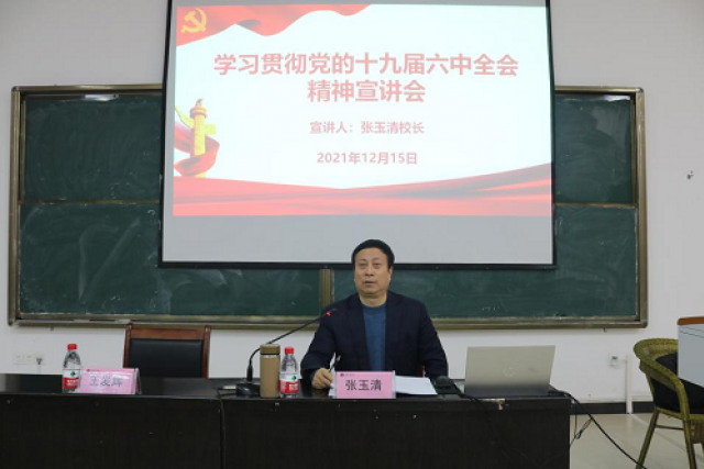 12月15日,董事长张玉清在理工楼C座东面多媒体教室宣讲党的十九届六中全会精神,公司领导班子、教师代表和员工代表共计200余人聆听了宣讲报告。