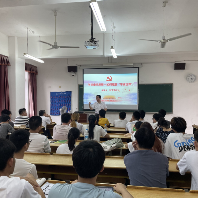 首先,张玉清董事长从历史维度、国际视野,讲授了中国从站起来、富起来,到强起来的伟大历程,深入浅出地分享了“平视世界”的历史背景、主要内涵和现实启示。授课中,他分享了自己的求学历程,对同学们提出了“善良、真诚、正义、担当”青年寄语。最后,对于即将步入大四年级,对同学们提出了要进一步“认清自己、了解社会、磨炼意志”的殷切希望,希望同学们书写精彩人生,争做新时代的有为青年。