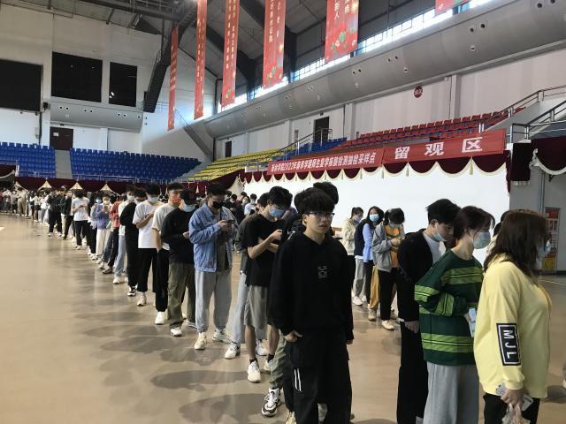 经过前期精心、周密的组织安排,同学们排着整齐的队伍,有序进入馆内,依次采样,两小时左右即全部完成。经检测结果显示,975名同学检测结果均为“阴性”。