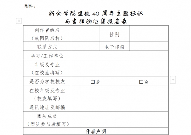 (二)作品电子版以附件形式发送至77250404@qq.com。邮件主题填写为“建校40周年主题标识与吉祥物设计”。请务必注明作者姓名、单位、联系方式等信息。
