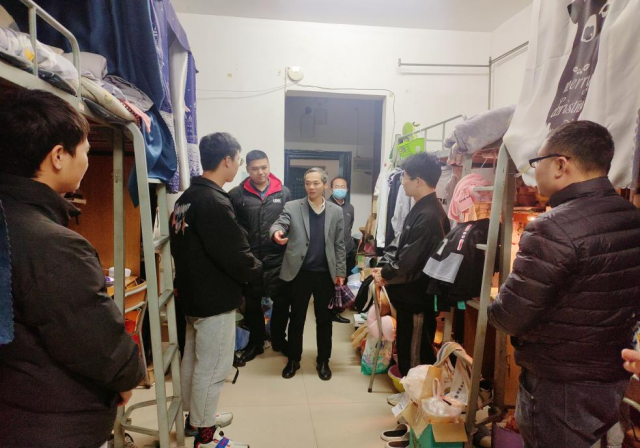 为及时了解掌握疫情期间员工的思想动态和心理状况,确保员工工作有序平稳开展,12月1日晚,公司负责人、党委副书记、副经理同辅导员、班主任一起深入员工宿舍,实地了解同学们的学习生活情况,并为同学们送去关心和问候。