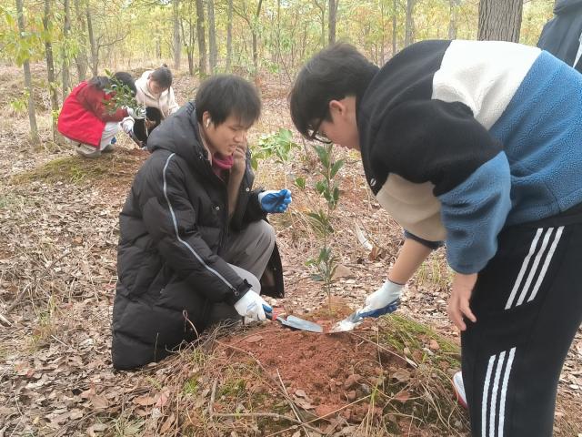 植树现场,各小组分赴后山不同角落,挖坑、扶苗、填土、浇水,师生们齐心协力,将一株株树苗牢牢种在公司后山,共同为构筑绿色校园、推动可持续发展贡献青春力量。“绿水青山就是金山银山”,本次活动不仅为校园增添了一抹盎然生机,更彰显了新时代青年在生态文明建设中的使命担当。